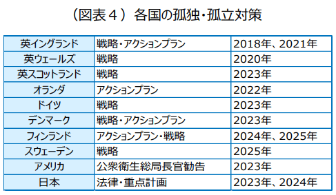 広範にわたりがちな孤独・孤立対策に適切に資源を投入するため、諸外国の取り組みをベンチマークとして政策効果を高めていくことが重要だ。