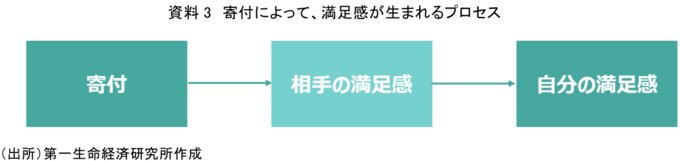 この寄付をしたことによる満足感のなかで最も代表的な満足感として知られているのが「利他性」からくる満足感だ。相手が喜んだり、相手の状態が良くなったりと、相手の満足感が高まると自分自身も満足感を感じるというプロセスである。