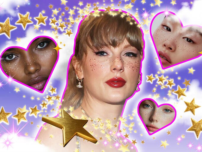 テレビ画面には、テイラー・スウィフトさんがチーフスのタイトエンドでボーイフレンドのトラビス・ケルシー選手を応援する映像が映っており、しかも彼女はファジットの看板商品であるラメ入りそばかすタトゥーシールを顔に貼っていたのだ。