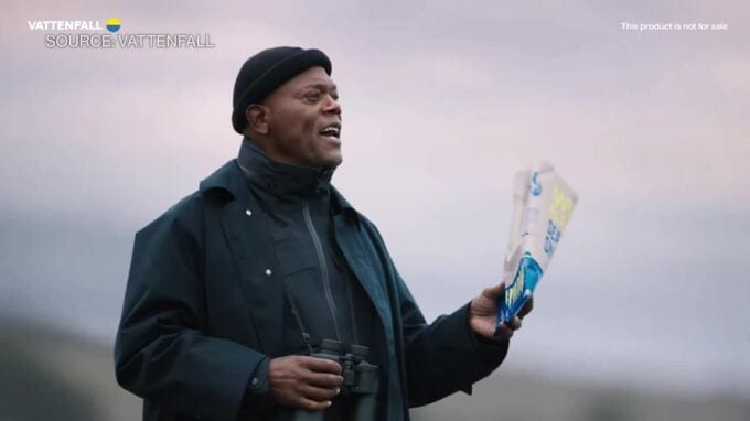 バッテンフォールが7月30日に公開した1分間の動画で、ジャクソンさんは「これらの巨人たちは化石燃料にあらがってそびえ立つ。CO2(二酸化炭素)に突きつける海から突き出た中指のように」と語っている。