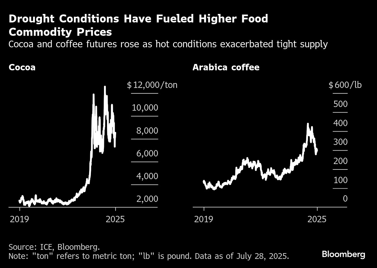 干ばつはパナマ運河やライン川といった主要な水路を経由する物流を脅かす恐れがあるほか、農作物の収穫量を減らし、食品価格の上昇を招き得る。猛暑によって収穫が減少したことで、カカオやコーヒー、オリーブ油などの商品の価格が高騰している。