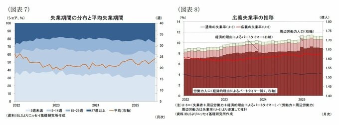7月の長期失業者数(27週以上の失業者人数)は182.6万人(前月:164.7万人)と前月から+17.9万人の増加となった。長期失業者の失業者全体に占めるシェアは24.9%(前月:23.3%)と前月から+1.6%ポイント上昇した。一方、平均失業期間は24.1週(前月:23.0週)と前月から+1.1週長期化した。