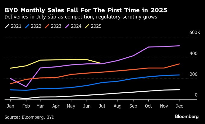 夏場に中国国内の新車販売は低調となる傾向があり、今回の減速は想定外ではないが、年間550万台というBYDの販売目標達成には逆風となり得る。中国当局は現在、自動車業界の監視を強化しており、価格競争をあおってきた大幅な値引きを取り締まる方針を表明している。