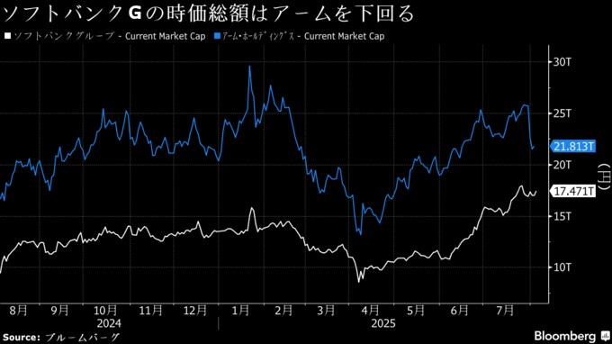 ソフトバンクGの時価総額は約17兆円と、保有資産全体の推定価値に対して約4割も割安な水準で取引されている。保有するアーム株(時価総額約21兆円)の約9割分も含む。エヌビディア(同647兆円)や、AI進展と最も深く関わる他のテクノロジー企業と比べれば、大きな開きがある。