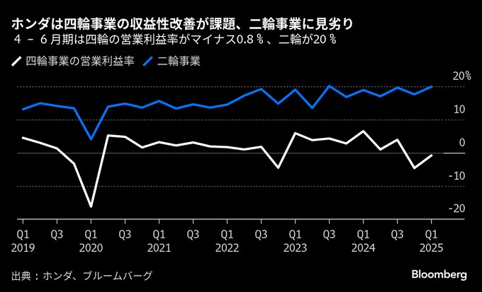 (ブルームバーグ):ホンダは6日、今期(2026年3月期)の営業利益見通しを上方修正した。日米関税合意を受けて従来想定より影響が緩和されることなどが要因だが、関税の引き下げ時期を含め不透明な点も多く同社の幹部は懸念を示した。
