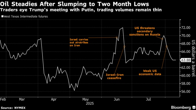 Oil Holds Near Two-Month Lows as Trump-Putin Meeting Looms