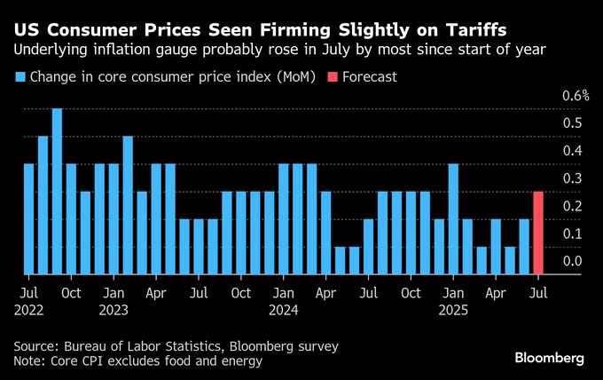 ウルフ・リサーチのチーフエコノミスト、ステファニー・ロス氏は7月の米CPIについて、「やや高めの数字になる可能性がある」と指摘。「ただし、関税の本格的な影響が表れ始めるのは今後数カ月の統計になるだろう」と述べた。