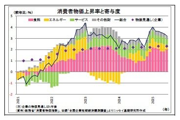 また、日銀による利上げの加速が長期金利の上振れ要因になる可能性もある。特に最近の食品価格上昇は、日銀を含めて大方の事前の予想を超えている。