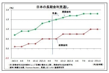 以上の状況を踏まえて、今後、来年度末にかけての長期金利の見通しについて考えると、メインシナリオとしては緩やかな上昇基調が続くと予想される。