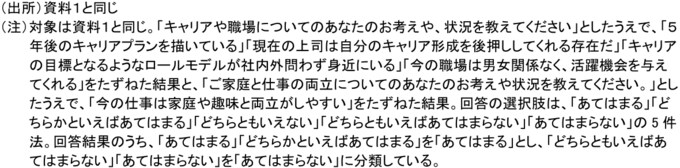 したがって、子育てに積極的に関わる社員が、同時にキャリア形成を諦めないためには、両立支援の充実のみでなく、働き方の変化があってもキャリア形成が可能となる道筋を企業がいかに示せるかが重要となるだろう。