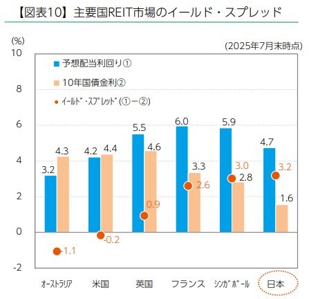 ・7月末のJ-REITのイールド・スプレッドは、主要国中で最大となっています。