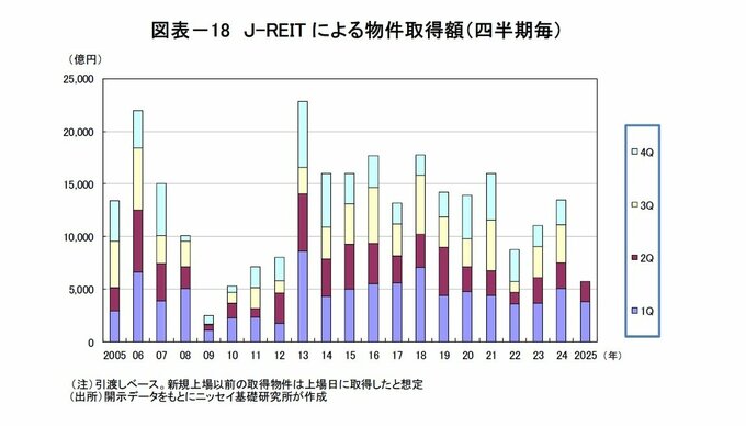 2025年第2四半期の東証REIT指数(配当除き)は3月末比+5.2%上昇した。