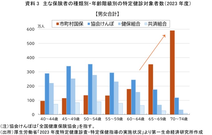 特に市町村国保では、同割合が高い傾向にある65歳以上の対象者が他保険者から移行してくることに加え、人数も最も多くなるという構造的な課題が浮き彫りになった。