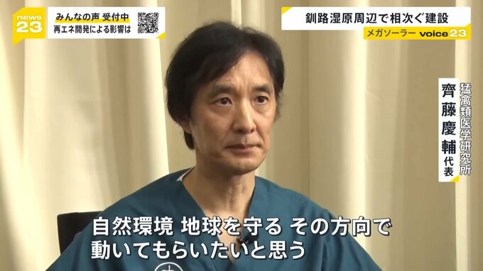 「地球温暖化を防ぐものとして、温室効果ガスを出さない発電というのは重要だと私も認識している。人間ファーストでも動物ファーストでもなく、きちんとした共生への道を選ぶべきだと思う。しっかりとルール作りをして、それにみんな従って、自然環境、地球を守る、その方向で動いてもらいたいと思う」