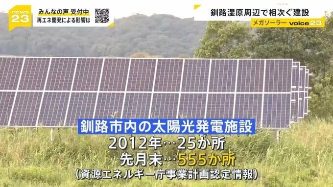 釧路市では、2012年は25か所でしたが、現在は555か所に急増していて、この状況に著名人らからは「環境破壊」を指摘する声が上がっています。