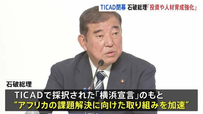 横浜で開催されたTICAD=アフリカ開発会議は先ほど閉幕し、石破総理はアフリカの未来のために投資や人材育成などを強化すると強調しました。石破総理「今回のTICAD9を機に、アフリカの未来への投資拡大や産業協力…