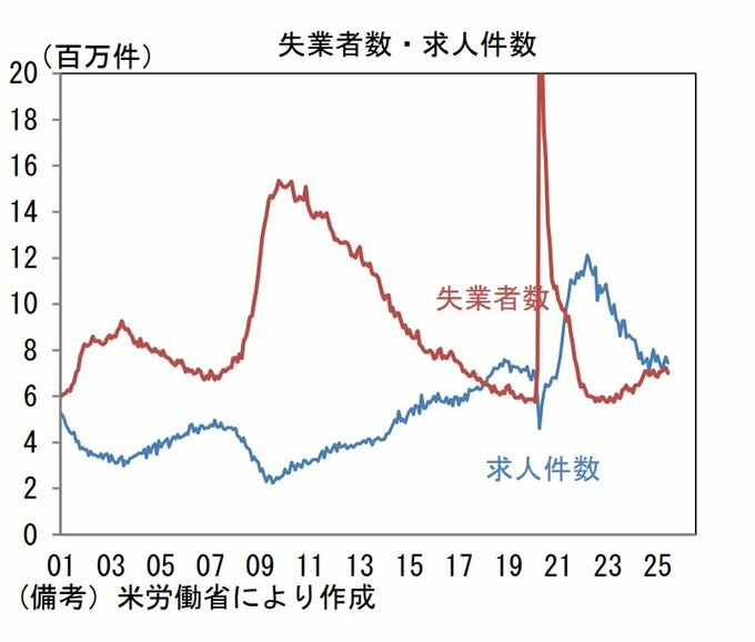 と失業者数はこの1年程度、両者が睨み合う構図となっている。