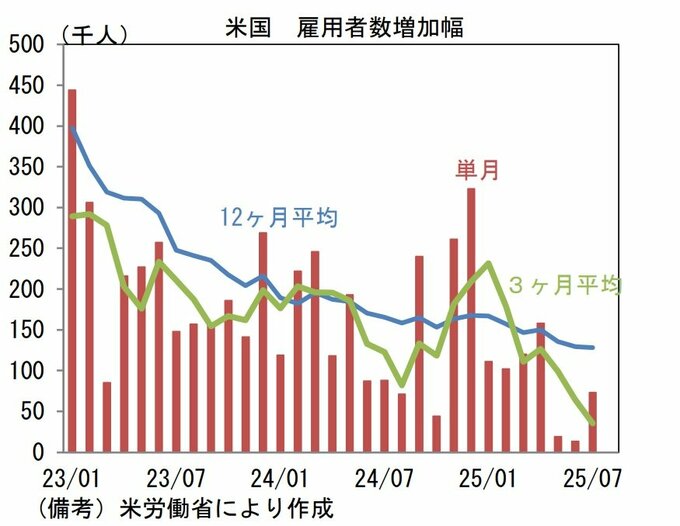 年内の利下げは労働市場データに依存するのが基本的であろう。雇用統計の雇