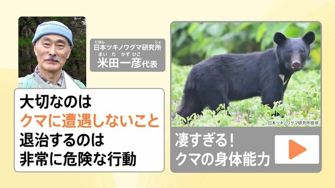 米田代表は「大切なのはクマに遭遇しないこと。退治するのは非常に危険な行動」と話します。