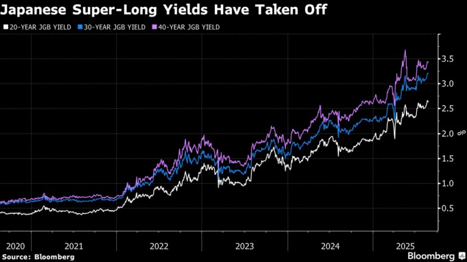 日本銀行が大規模な国債購入を段階的に縮小していることや、日本の財政赤字やインフレ加速への懸念により、20年国債の利回りは1999年以来の高水準、30年債と40年債はことし過去最高を更新した。利回りが上昇基調にある中、海外投資家は7月まで7カ月連続で超長期国債を買い越している。