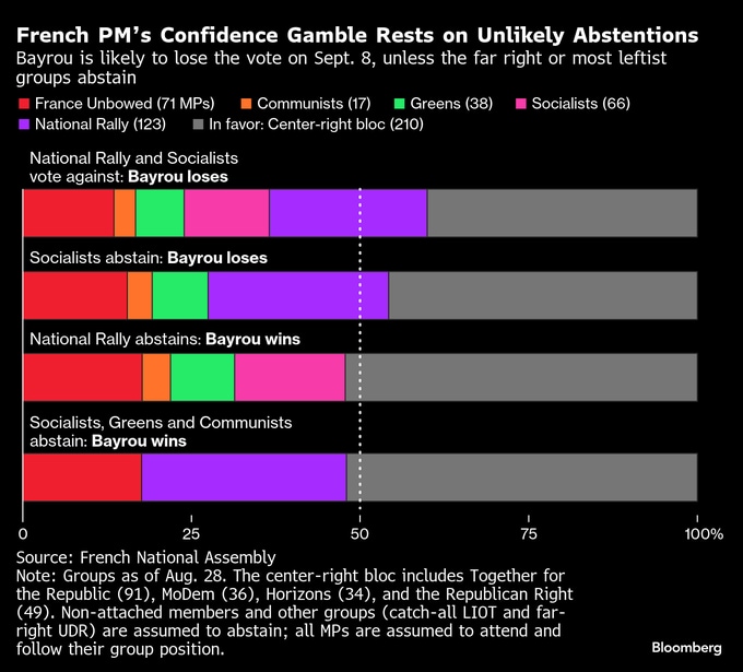 だが、議会内の勢力均衡を踏まえると、バイル氏の内閣存続の展望は乏しい。9月8日に辞任を強いられないためには、バイル氏は極右を取り込むか、左派議員らの多くに棄権させるしかないが、どちらの勢力も反対票を投じる方針を繰り返し公言している。