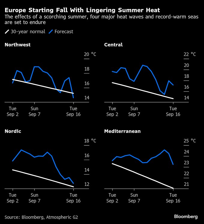 原題:Europe Set for Warm September Before Start of Heating Season(抜粋)