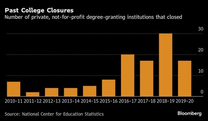 今回の予測は、全米教育統計センター(NCES)が2020年までの10年間で予想した閉鎖数(私立非営利2年制・4年制大学)の3倍を上回る。