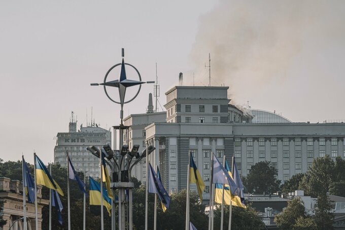 キーウ中心部にある大きな閣僚会議(内閣)ビルから煙が上がる様子が見えた。この建物は屋根と上層階が損傷し、消火活動が行われているとスビリデンコ首相がソーシャルメディアへの投稿で明らかにした。