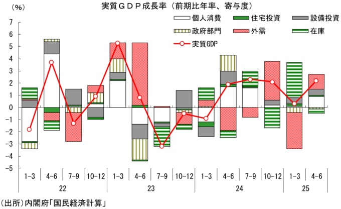 もっとも、先行きについては不安が残る。日米交渉の合意により対米関税率は引き下げられることが決まったが、それでも15%という高い関税がかけられることは変わらず、日本経済への下押しも相応に大きい。