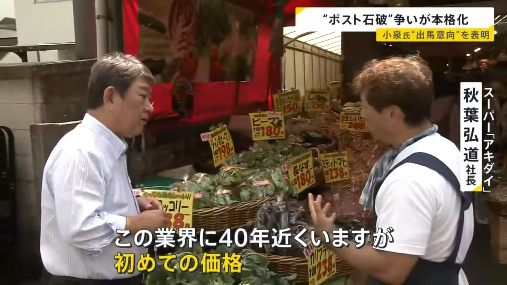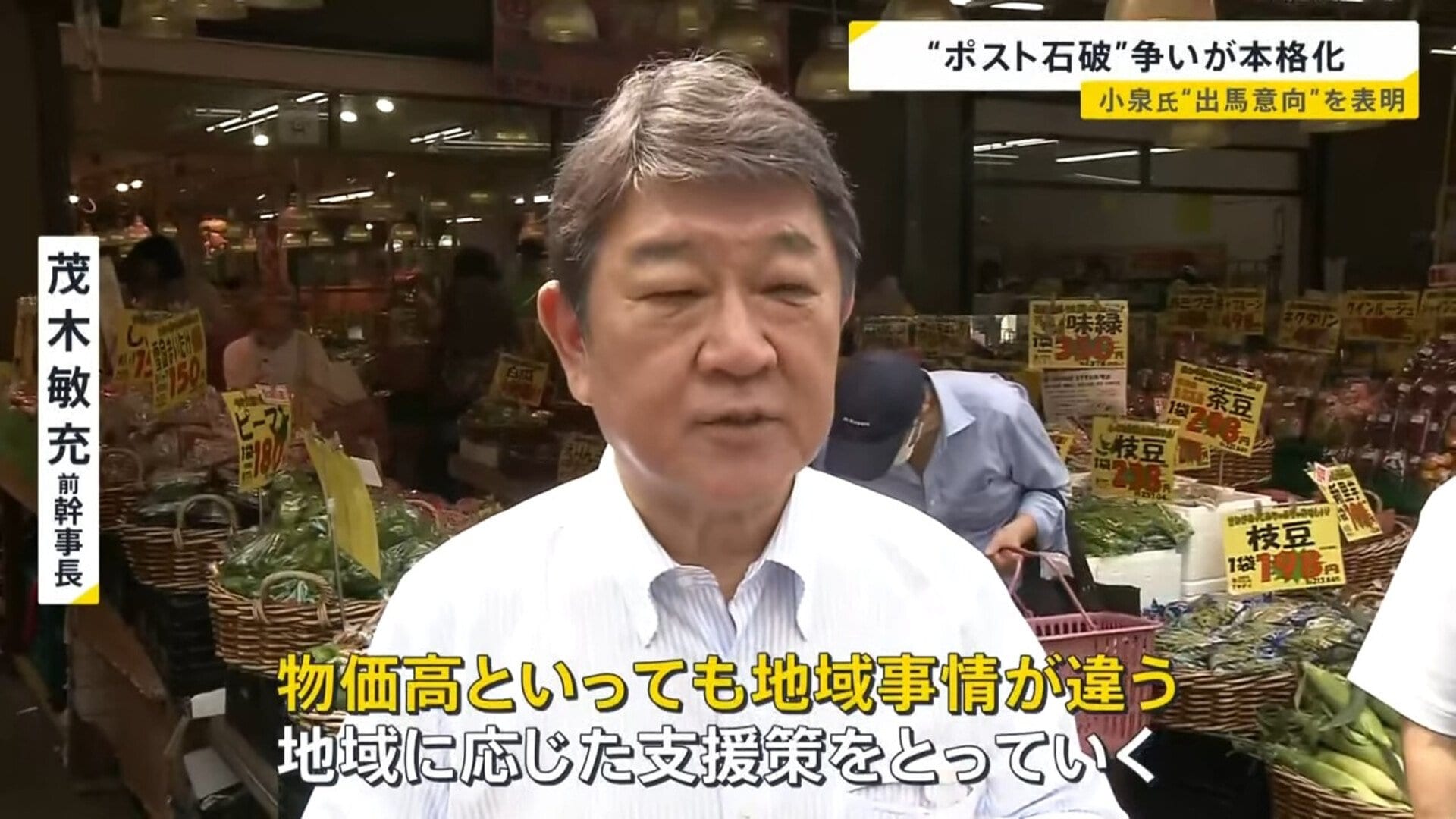 前回の得票が5人で最も少ない茂木敏充前幹事長。”名物社長”がいる都内のスーパーを視察しました。