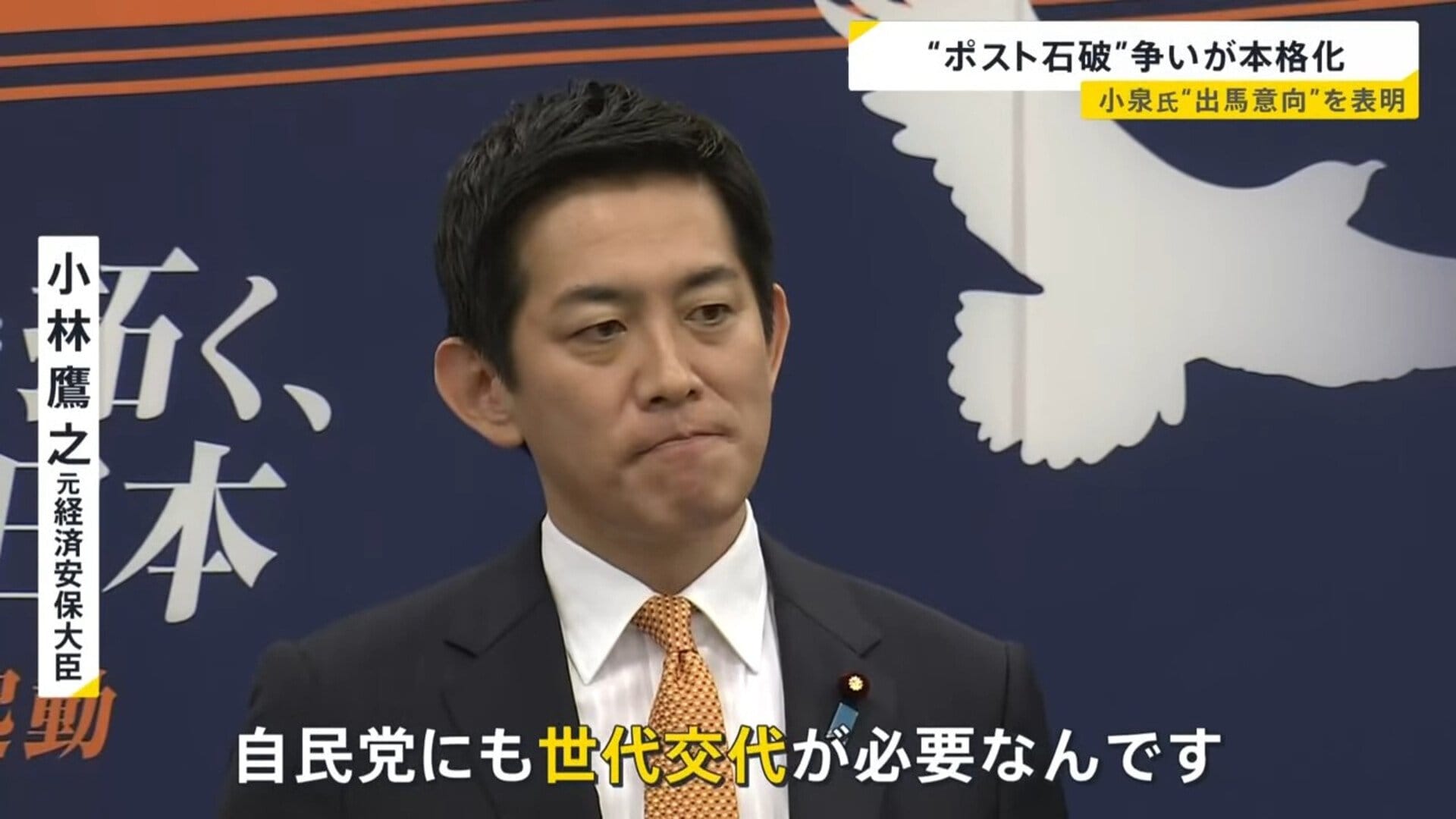自民党総裁選で”ポスト石破”をめぐる争いが本格化しています。小泉農水大臣が出馬の意向を表明したほか、林官房長官も立候補を表明。小林元経済安全保障担当大臣は出馬会見を開き「世代交代が必要」などと訴えました。