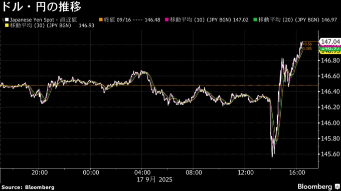 円は対ドルで一時0.7%高の1ドル=145円49銭まで買われる場面もあったが、その後は下げに転じた。