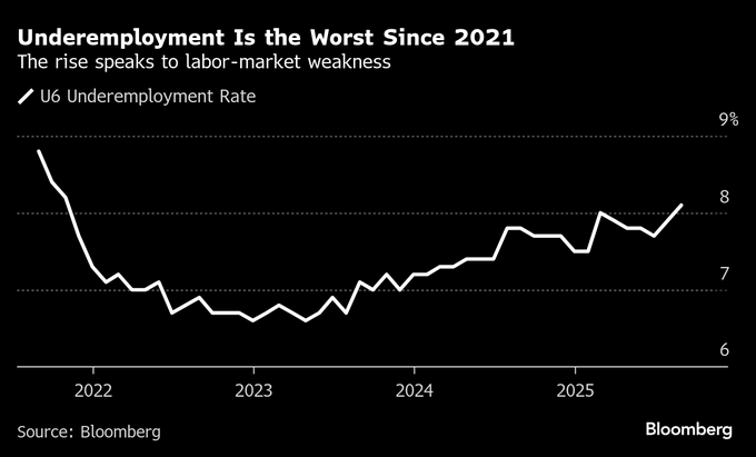 下のチャートが示す不完全就業率の上昇が、FRBが利下げを検討せざるを得ない理由の一つだ。