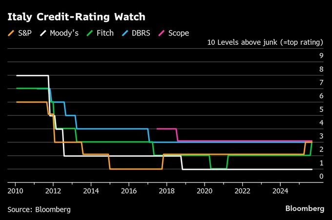 原題:Italy Gets First Fitch Upgrade Since 2021 in Reward for Meloni(抜粋)