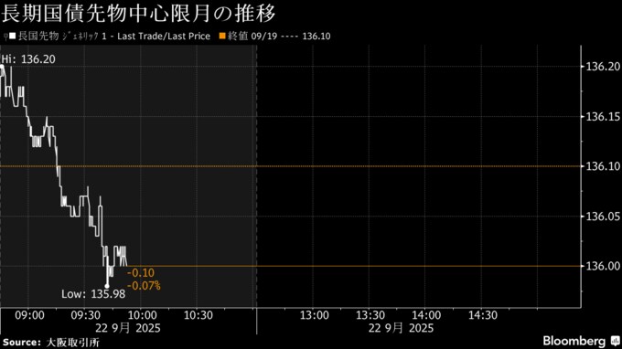 岡三証券の長谷川直也チーフ債券ストラテジストは、日銀金融政策決定会合で2人の審議委員が反対票を投じたことで10月利上げ期待が高まっており、中期債を中心に売りが優勢と指摘。「植田和男総裁の会見はそこまで10月利上げに傾いている印象ではなかったが、市場で10月は無理だとの見方が修正されており、買いを入れにくくなっている」と述べた。