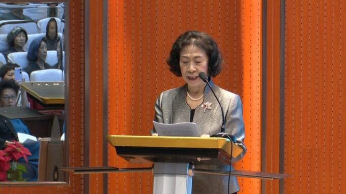 残留孤児を代表してあいさつをした池田澄江さんは次のように学生たちに語りかけました。