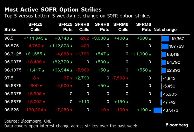 担保付翌日物調達金利(SOFR)に連動するオプション取引は、市場参加者が年内の追加利下げが25ベーシスポイント(bp、1bp=0.01%)の1回にとどまると見込んでいることを示している。先週時点では、年内50bp利下げ見通しを反映したオプション取引が増加していた。