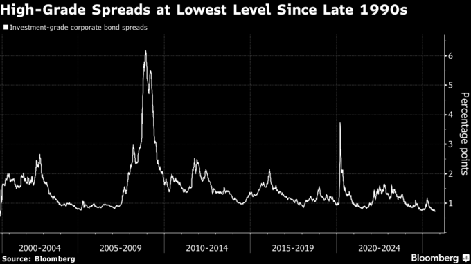 投資適格債の発行額は23日の時点で、9月として過去最高額に達した。9月は例年最も発行が膨らむ月の一つだが、先週の平均上乗せ利回り(スプレッド)は、約30年ぶりの小幅な数値に縮小していた。