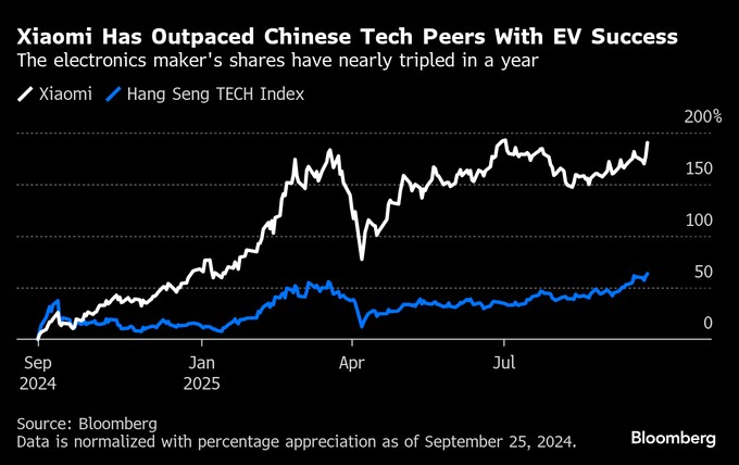 EV事業の拡大を見込む投資家の期待を背景に、時価総額が2000億ドル近くに達した小米は、比亜迪(BYD)やテスラが牛耳る市場で、独自の地位を築きつつある。
