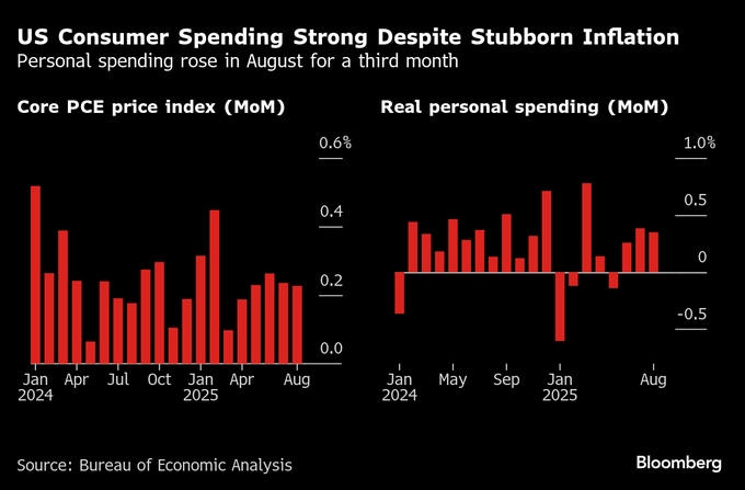 (ブルームバーグ):8月の米個人消費支出(PCE)統計では、消費支出が市場予想を上回り、3カ月連続での堅調な増加を示した。インフレが高止まりする中でも、個人消費は引き続き経済をけん引している状況が示唆された。