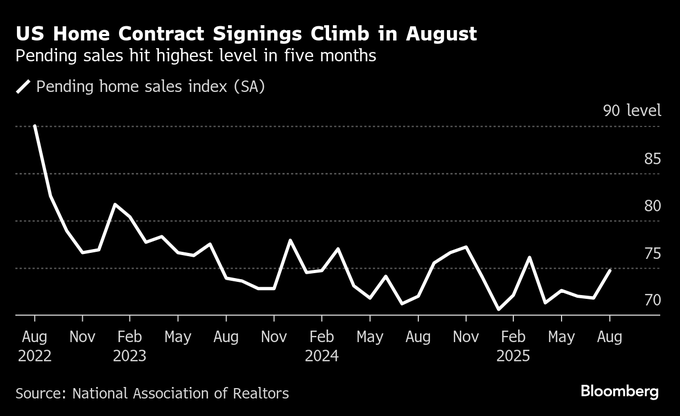 先週発表された8月の米新築住宅販売も予想外に急増し、住宅市場が長年の停滞から抜け出しつつある可能性が示唆される。住宅ローン金利は1年ぶり低水準の6.34%まで下がり、多くの消費者に購入を促す一方、自宅をようやく売りに出す動きにつながっている。