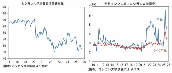 やや上昇の兆しがあるものの、トランプ関税が加速度的に消費者の予想インフレ率を押し上げている様子は窺えない。