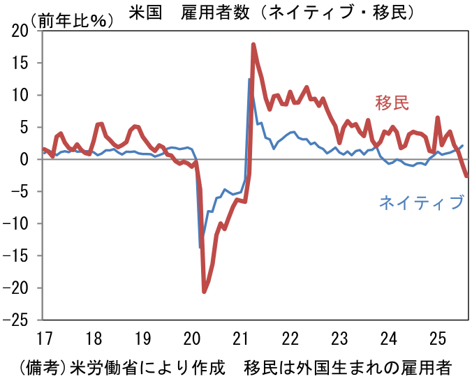 もっとも、雇用者数の増勢鈍化の背景には不法移民の強制送還等の影響があり、全てが労働需要(=景気)の弱さによって説明される訳ではない。