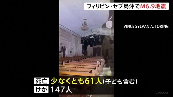 日本時間きのう午後11時ごろ、フィリピン・セブ島の北部沖を震源とするマグニチュード6.9の地震がありました。地元当局によりますと、この地震でこれまでに子どもを含む少なくとも61人が死亡したということです。…