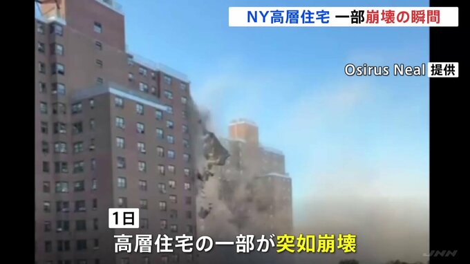 記者「こちらはニューヨーク市内の20階建ての集合住宅ですが、建物の一部が最上階から下まですべて崩れてしまっています」アメリカ・ニューヨークのブロンクスで1日、高層住宅の一部が突如、崩壊しました。ボイラ…