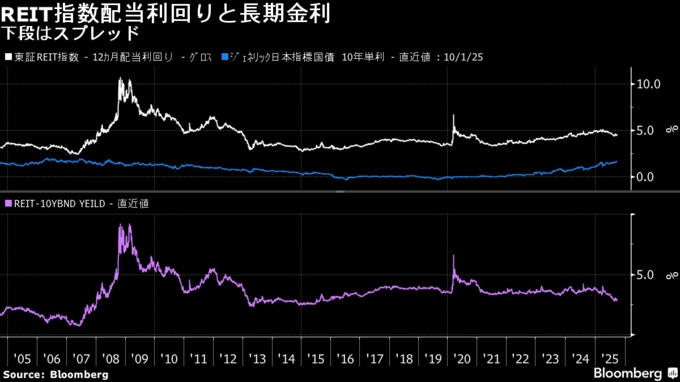 (ブルームバーグ):日本銀行が指数連動型上場投資信託(ETF)と共に保有する不動産投信(J-REIT)の売却を開始することは、約3年ぶりの高値圏にある東証REIT指数の失速につながる可能性がある。