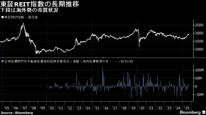 東京証券取引所が毎月公表する投資部門別REIT証券売買状況によると、売買代金全体の6割以上を占める海外勢は8月に4カ月ぶりに買い越したが、昨年まで2年連続で売り越していた。