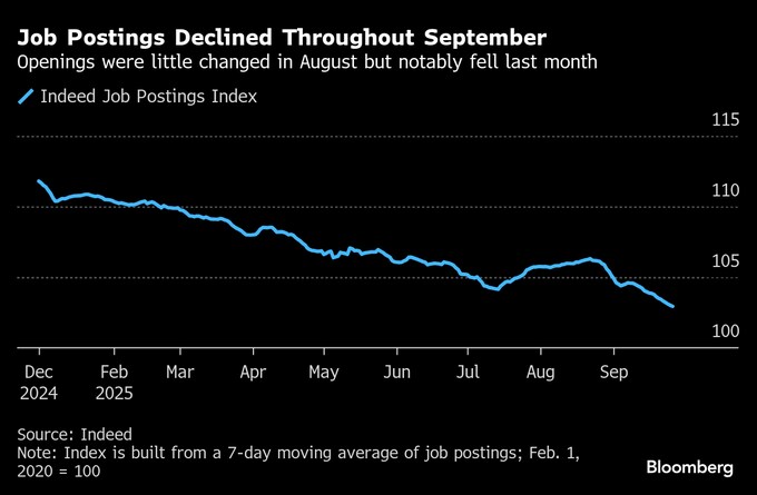 これらの数字は、政府統計の停止される前から見られた「雇用も解雇も低水準」という状況とおおむね一致する。こうした傾向が月末まで続けば、投資家の予想通り、連邦準備制度理事会(FRB)が今月下旬に追加利下げに踏み切る十分な論拠となり得る。