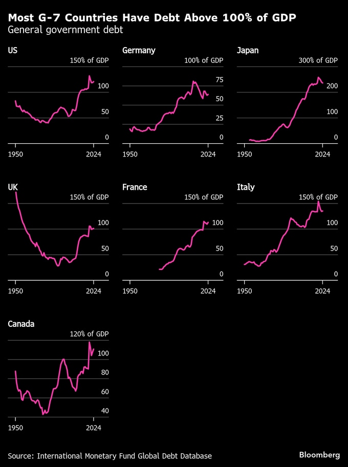 こうした動きから浮かび上がるのは、膨大な借入金の山に直面する各国政府が難しい選択を迫られる中、政治的対立が主要経済の体力をむしばんでいるという現実だ。国際通貨基金(IMF)によると、世界の公的債務は総額99兆ドルに達している。