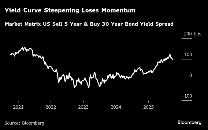投資家はこの変化についていくつかの要因を挙げている。まず、スティープナー取引が好調に推移した後の利益確定だ。 さらに、労働市場の弱さを示す兆しが増える中、短期債は既に今後1年間で1ポイントの利下げが織り込まれており、より高い利回りを得るために長期ゾーンに目を向ける動きもある。